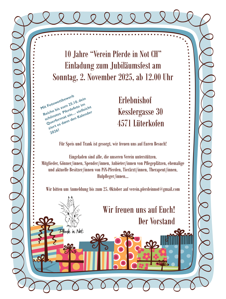 Dank unserer treuen Spender/innen blieben unsere Finanzen trotz der 12 bis 13 stationären Pferde stabil. Dafür sind wir sehr dankbar. Auch wenn es ein ruhiges Jahr war, so war es dennoch rekordverdächtig: Noch nie hatten wir so viele stationäre Pferde, und zum ersten Mal durften wir an einer Hochzeit eines Vereinsmitglieds teilnehmen. Wie gewohnt hat die Community uns auch in schwierigen Zeiten unterstützt, als wir um Spenden für hohe Tierarztrechnungen baten. Besonders danken möchten wir für die Hilfe bei Nestonias Hufabszess, Koliken, Paghiras Vaskulitis und Lisandors schwieriger Reise zwischen den Welten.
