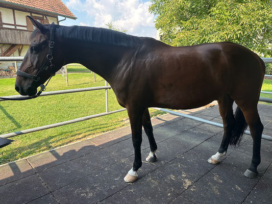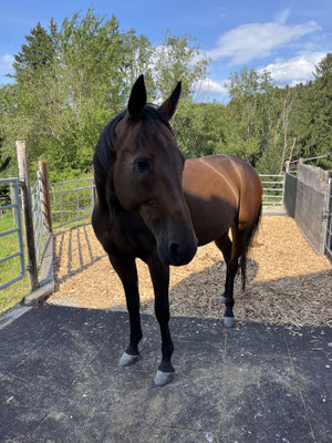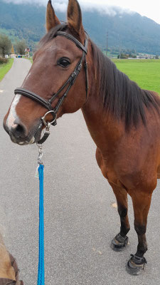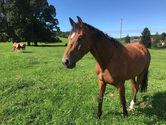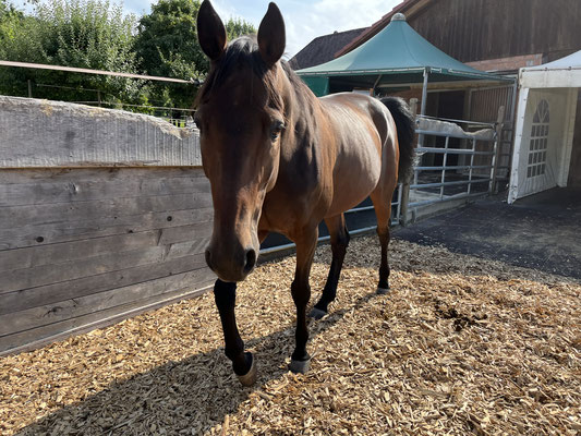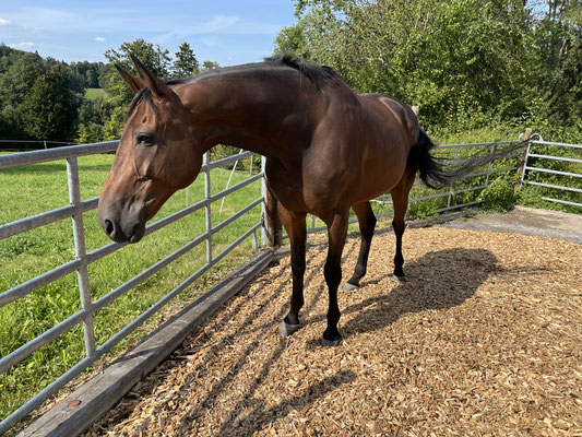 Er ist beschlagen, bekommt regelmässig Osteopathie, benötigt getreidefreie Fütterung und er lebt seit eh und je in Gruppenhaltung.