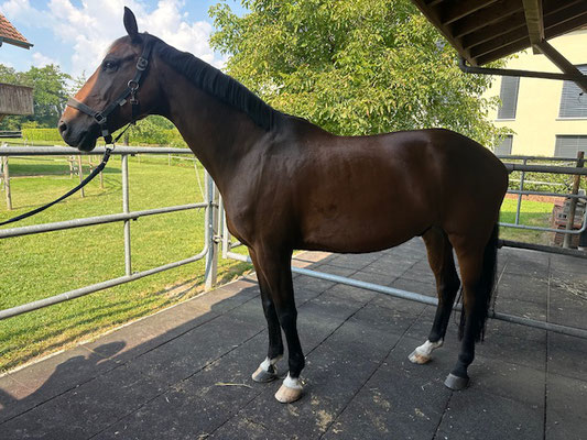 Nach einem Unfall beim Training im letzten Jahr hat sich eine Lahmheit vorne links entwickelt, die intensiv behandelt wurde (inkl. Klinikaufenthalt, Arthroskopien, Infiltrationen). Später wurde zusätzlich eine Fehlbildung der Halswirbelsäule festgestellt. Aufgrund dieser gesundheitlichen Vorgeschichte sucht Cor nun einen Platz, an dem er einfach Pferd sein darf.