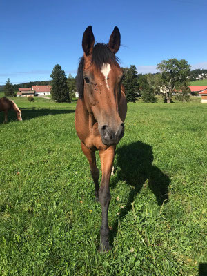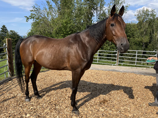 Wer traut sich so ein Pferd zu? Wer hat Erfahrung mit ehemaligen Rennpferden und den Problemen, die sie manchmal mit sich bringen? Wer hat die nötige Zeit und Geduld? Falls Mumuz noch zu einem Pferdeprofi geht, ist die Idee, als neue Besitzerin/neuer Besitzer bereits mit in dieses Training einzusteigen und so zusammenzufinden.
