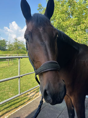 Cor ist brav im Umgang, schmiede- und verladefromm. Nur das Anfassen am Kopf in seiner Box mag er nicht so sehr.